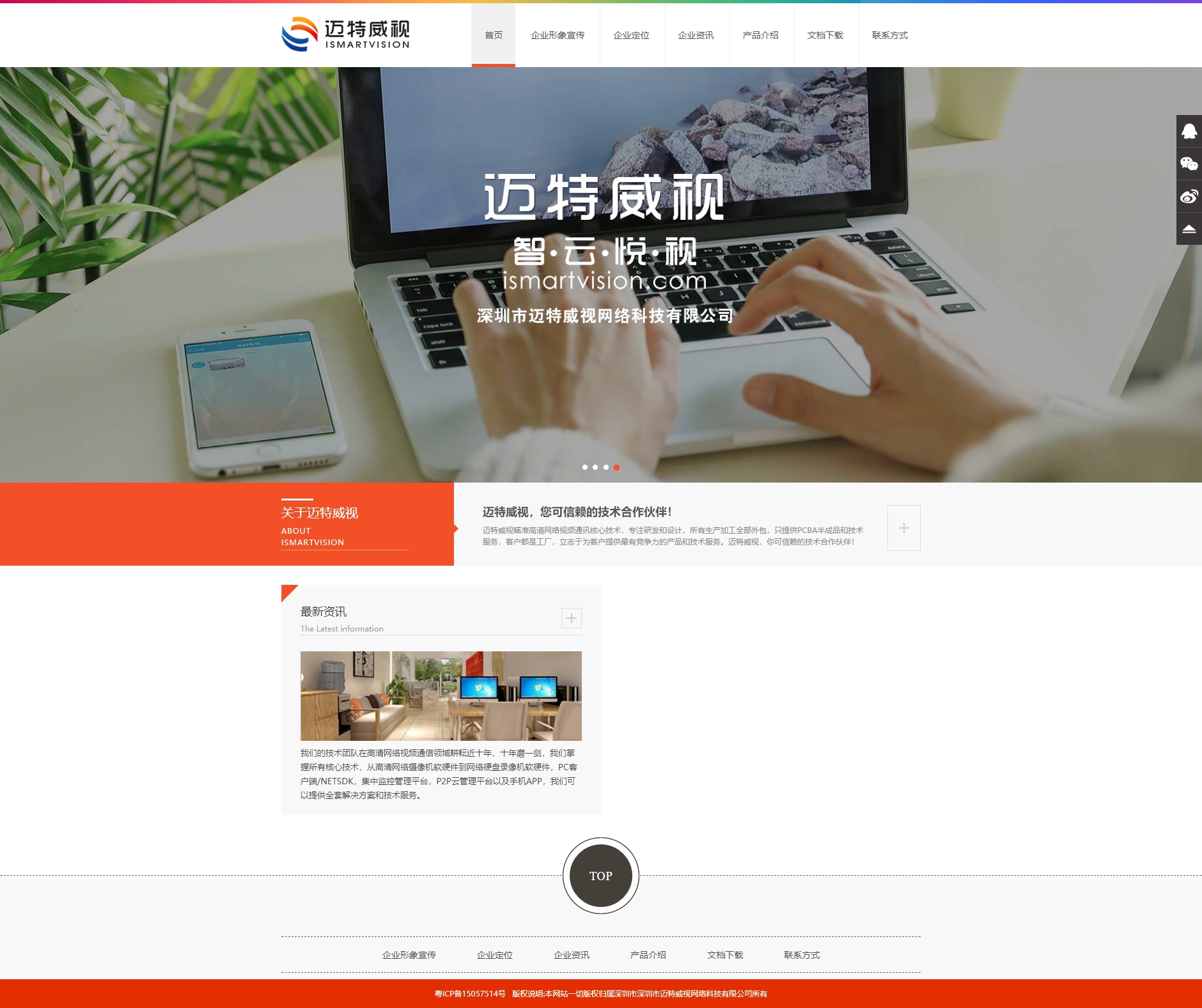 橙色的迈特威视网络科技公司网站html模板